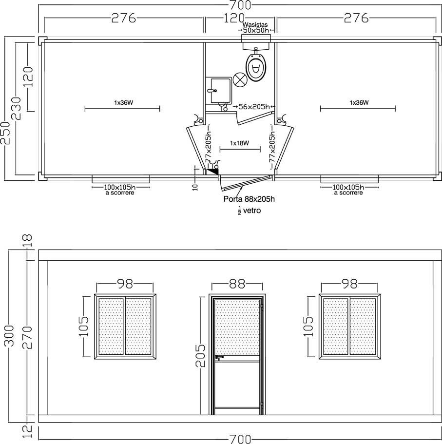 comprende; n. 2 punti luce con plafoniera fluorescente