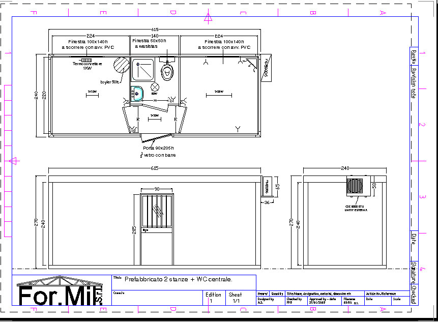 - OFF. N.13 PREFABBRICATO CON SERVIZIO IGIENICO DIM 6.15 X 2.40